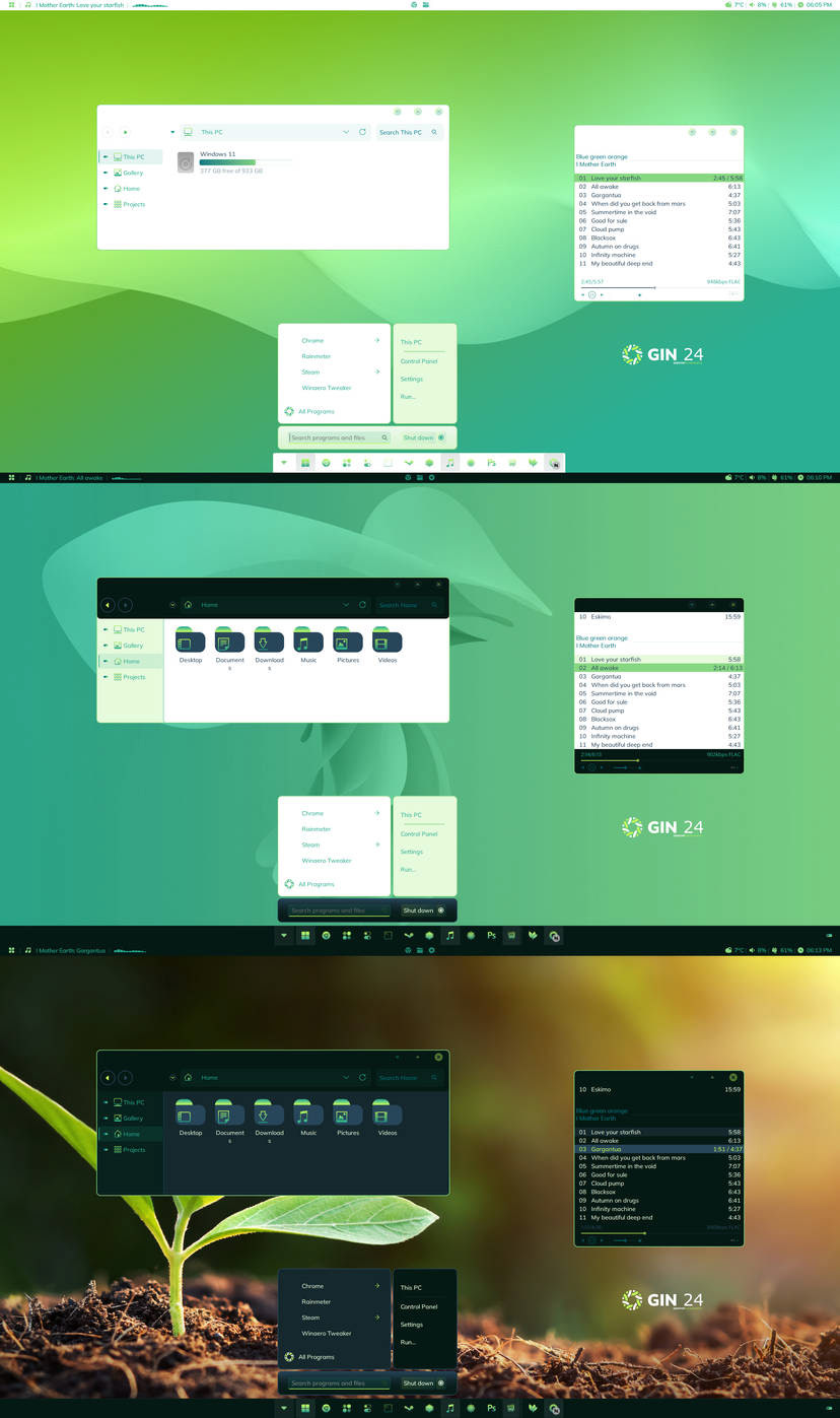 Introducing GIN 24 (Global In Nature) for your Windows 11 desktop environment. Made in collaboration with the fantastic theme creator niivu. See more and download the whole suite along with contributions from other artist